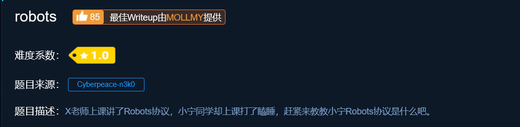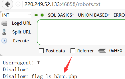 该题讲Robots协议,我们知道网络爬虫有个规则会访问网站的robots.txt文件来明确该站点那些地址允许被爬,那些禁止爬行。 所以我们先访问robots.txt