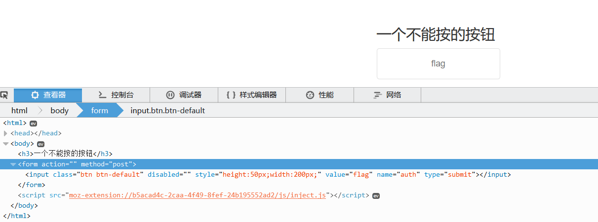 题目描述:X老师今天上课讲了前端知识,然后给了大家一个不能按的按钮,小宁惊奇地发现这个按钮按不下去,到底怎么才能按下去呢?