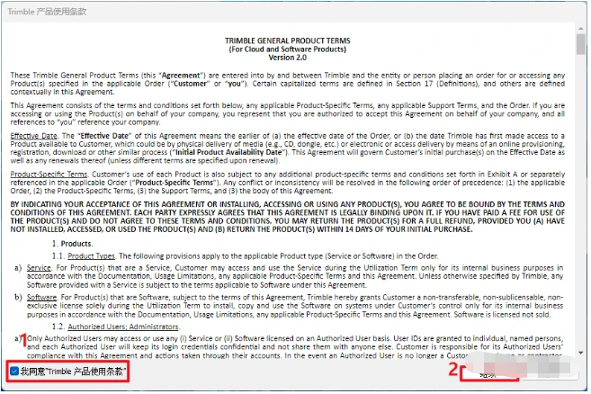 16. ①勾选“我同意..."; ②点击”继续“;