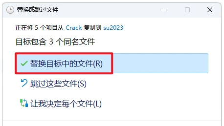 14. 点击”替换目标中的文件“;