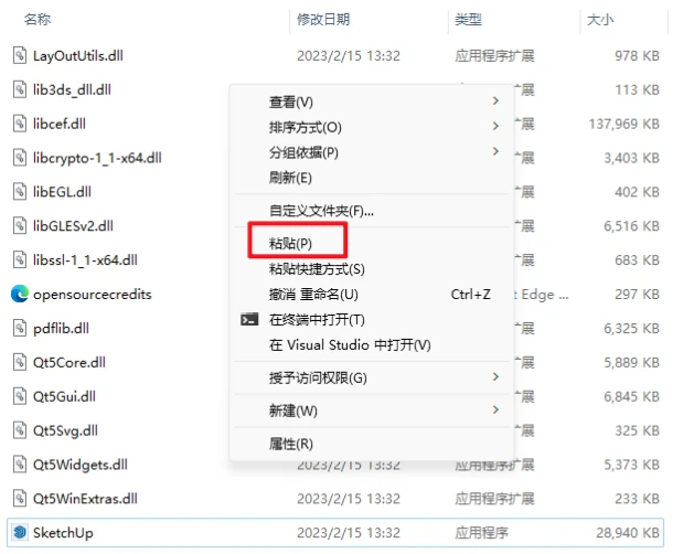 13. 将之前复制的【LayOut、Style Builder、sketchup】三个文件,在空白处点击右键选择‘’粘贴‘’即可;
