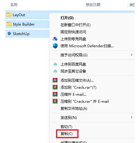 11. 全选【LayOut、Style Builder、sketchup】三个文件,然后点击鼠标右键选择”复制"即可;