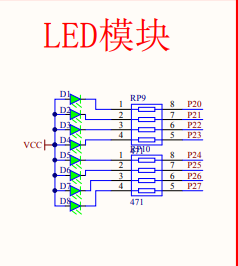 通过上面的LED原理图不难发现,当P2^0为0时,LED1亮,对应的十六进制为0xFE(1111 1110);