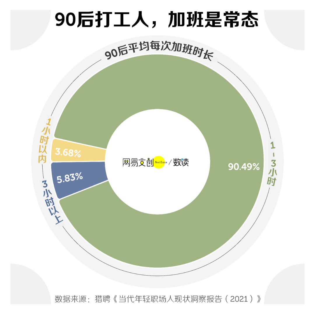 猎聘发布的《当代年轻职场人现状洞察报告》显示,只有不到 3 成受访者实现了“下班自由”,大多数职场人下班后还需要再加 1 - 3 小时的班 [12]。