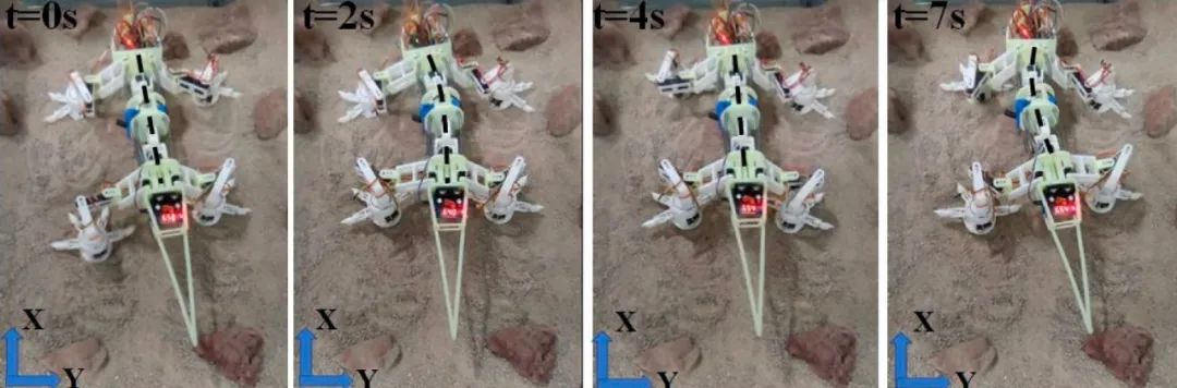 在流动性土壤测试中,机器人的脚趾可以90°弯曲,牢牢地抓住土壤;在多岩石环境中也能稳定地保持前进运动。