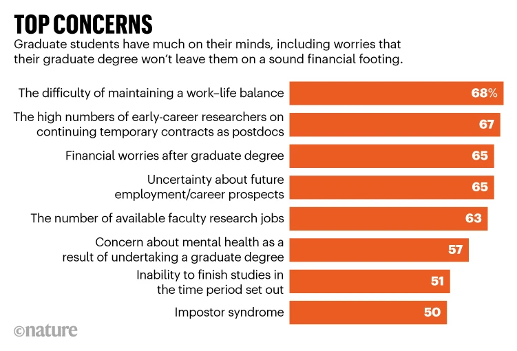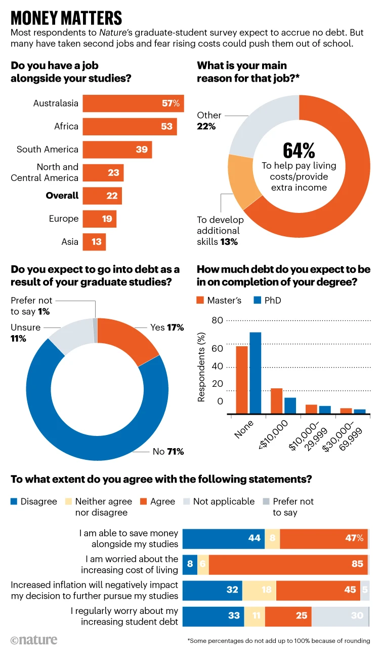 根据Nature对硕博研究生进行的一项调查,来自全球3200份回收问卷都表示,要在学业上跟上教学计划的同时维持基本的生计,正在变得越来越艰难。