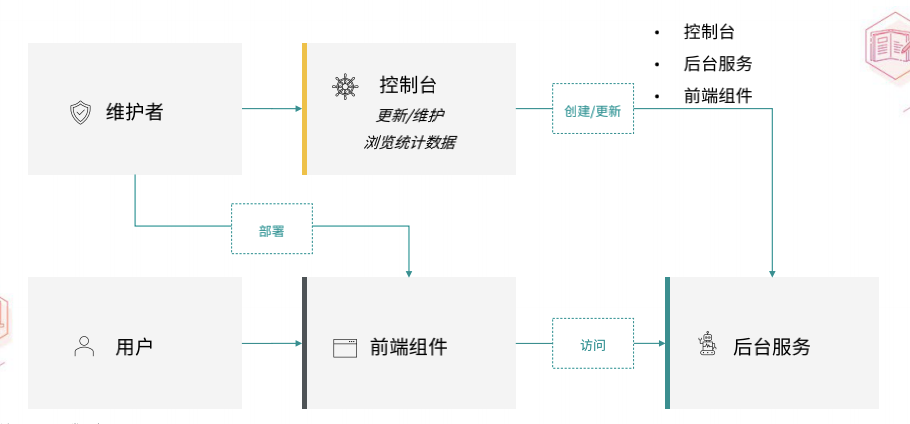 DocsQA 的系统架构分为三部分。第一部分是控制台,用于 DocsQA 的配置和更新,开发者可以在控制台上创建和更新问答系统。第二部分是前端组件,是一个交互式的前端插件,用于访问对应的后台服务,第三部分是后台服务,Jina AI 使用自己的 Jina 框架来搭建后台服务。