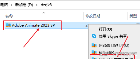 2.双击打开解压出来的Adobe Animate 2023 SP文件夹;