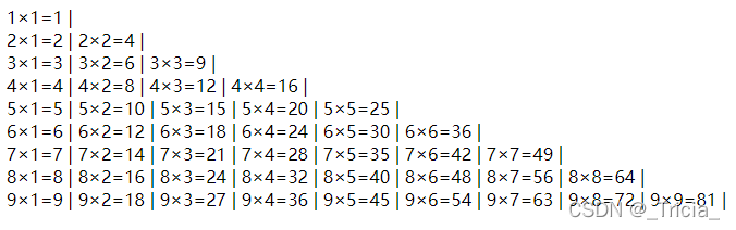 document.write(i + '×' + j + '=' + i*j + ' | ')