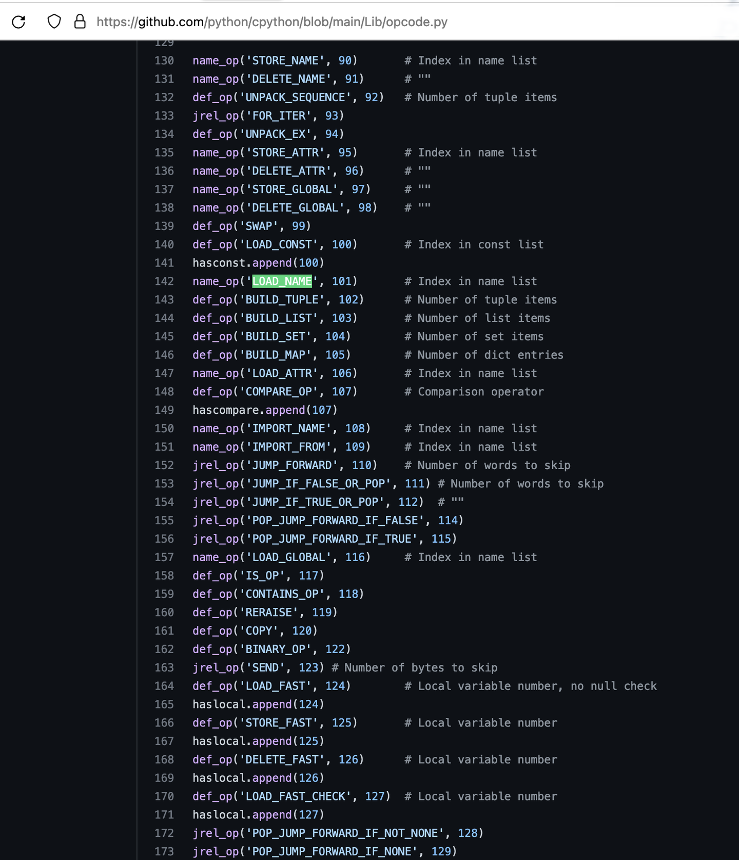 LOAD_NAME | 装载函数名称 | 101 | 0x65 |