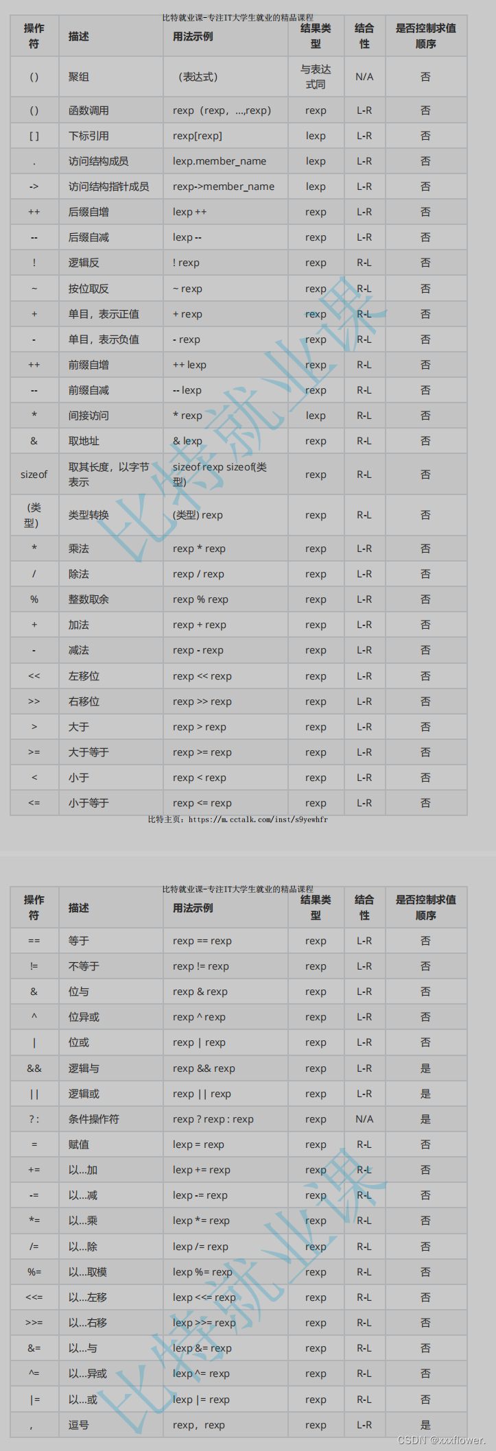 算术操作符 移位操作符 位操作符 赋值操作符 单目操作符 关系操作符 逻辑操作符 条件操作符 逗号表达式 下标引用、函数调用和结构成员
