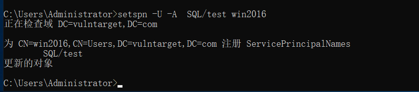域控机为域用户配置SPN,用于域用户配置约束委派