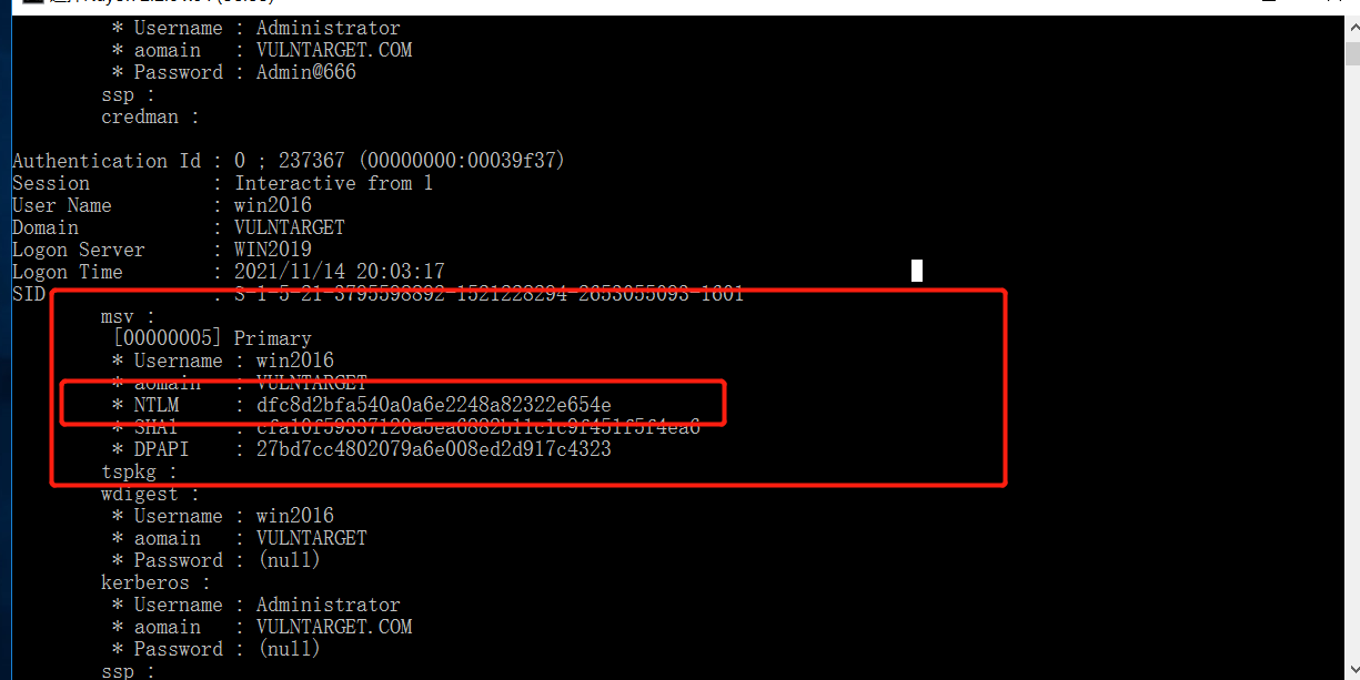 利用mimikatz拿到域用户win2016的NTLM hash进行利用