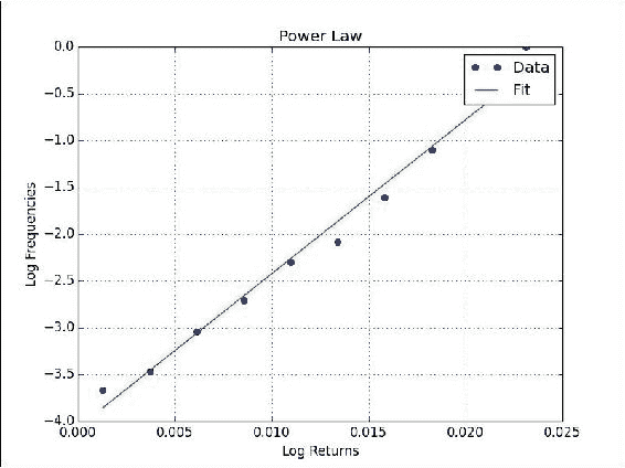 我们需要使用histogram()函数获得回报的频率。 返回计数和垃圾箱数组。 最后,我们需要记录频率,以获得良好的线性关系: