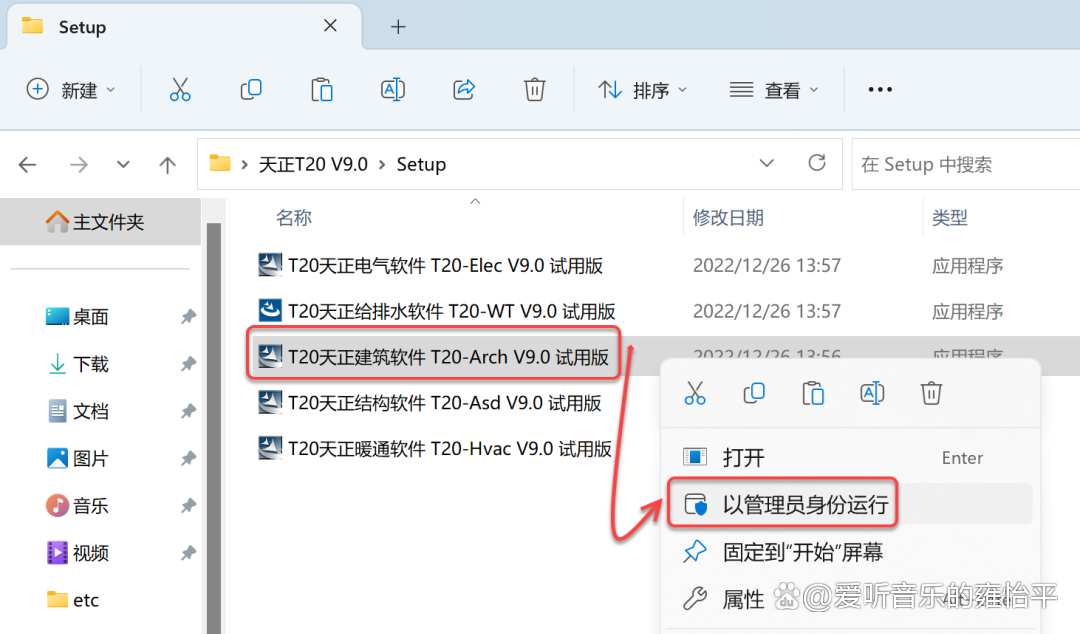 3.鼠标右击需要安装的天正产品(如:天正建筑)选择【以管理员身份运行】。