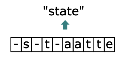 此时,就回到了我们上文提到的问题上了,由于字符间隔、图像变形等问题,相同的字符可能会得到不同的预测结果。在CTC算法中,定义了 B变换来解决这个问题。 B变换简单来说就是将模型的预测结果去掉分割符以及重复字符(如果同个字符连续出现,则表示只有1个字符,如果中间有分割符,则表示该字符出现多次),使得不同表现形式的相同字符得到统一的结果。如 图4 所示。
