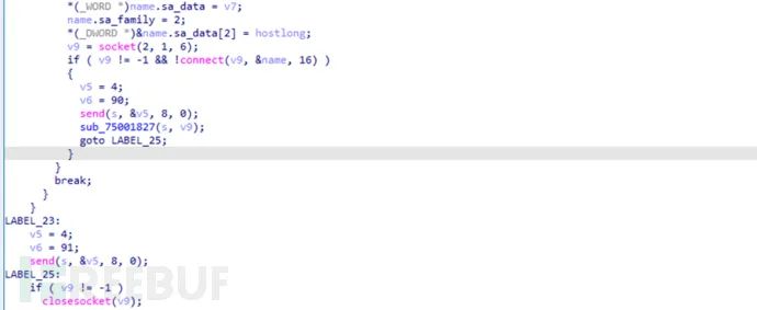 网络可用的情况下,构造网络数据进行发送,这里发送数据的目标地址为上一步中三个域名中的一个,估计也是用来测试网络的。真正与服务端进行命令交互的功能写在在释放的动态库中。