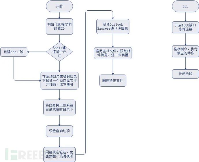 至此主文件分析完毕,总结一下功能就是释放dll并加载,设置自启动,拷贝自身,读取邮件信息继续传播。