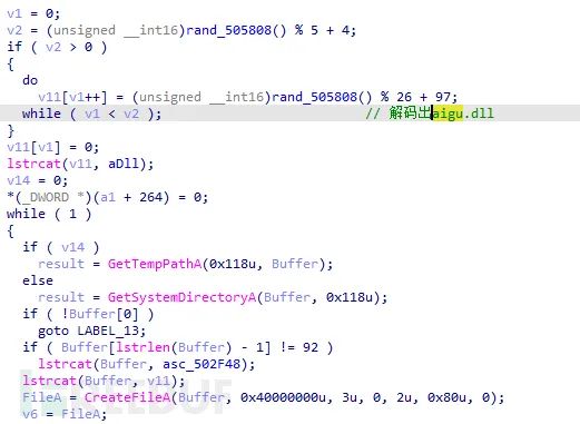 接着在临时目录或系统目录下释放一个动态库并加载运行,后续单独看此动态库的功能: