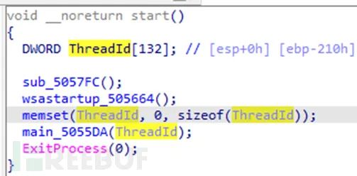 病毒先初始化套接字和线程ID便进入主函数: