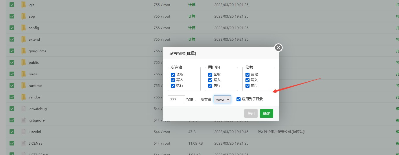3. 将下载的文件给权限777,所有者www, 看不见文件,在站内刷心一下,就可以看见文件了