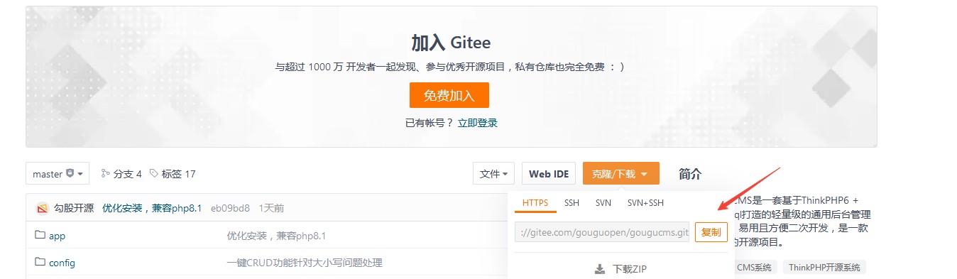 1. git clone https://gitee.com/gouguopen/gougucms.git 下载