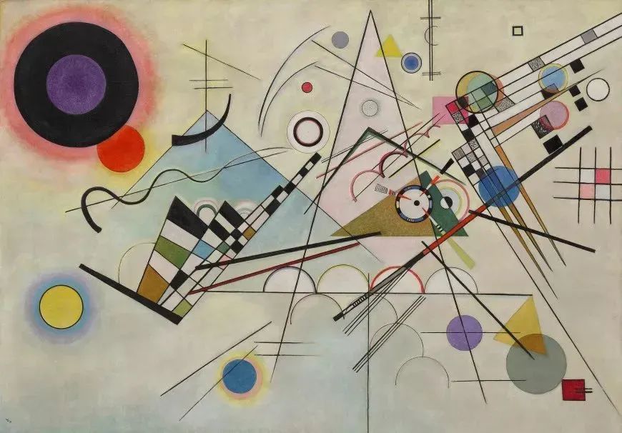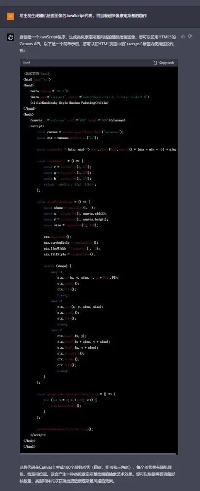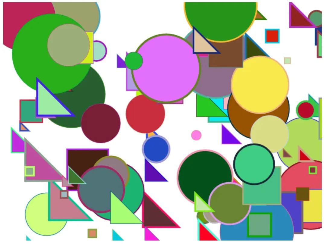 写出能生成随机绘画图像的JavaScript代码,而且看起来像康定斯基的画作