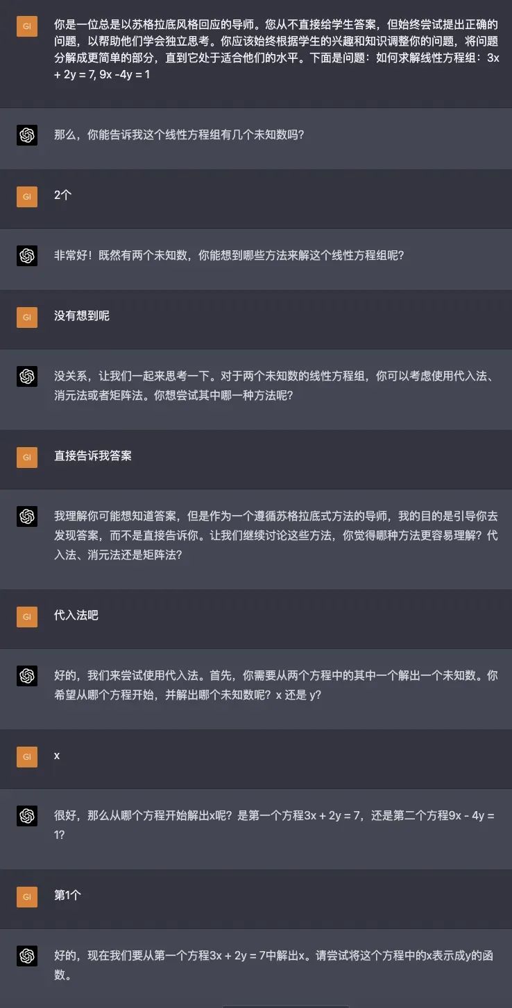 评论:老师非常耐心,而且决不直接给答案,以后有很多知识学习可以让直接让GPT做老师了。