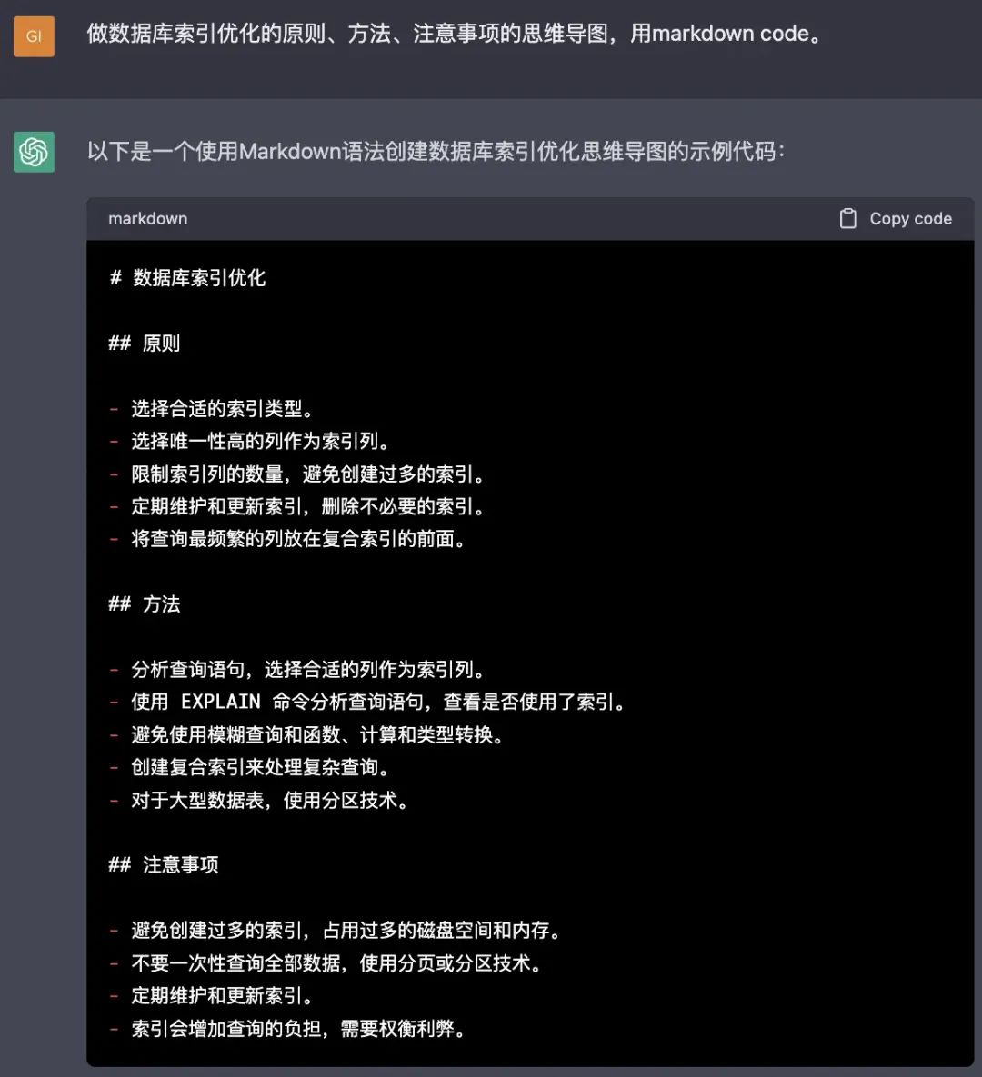 评论:目前未开放图像接口,不能输入、输出图片,但可以曲线救国,生成markdown格式代码,在第三方网站、工具上生成脑图。