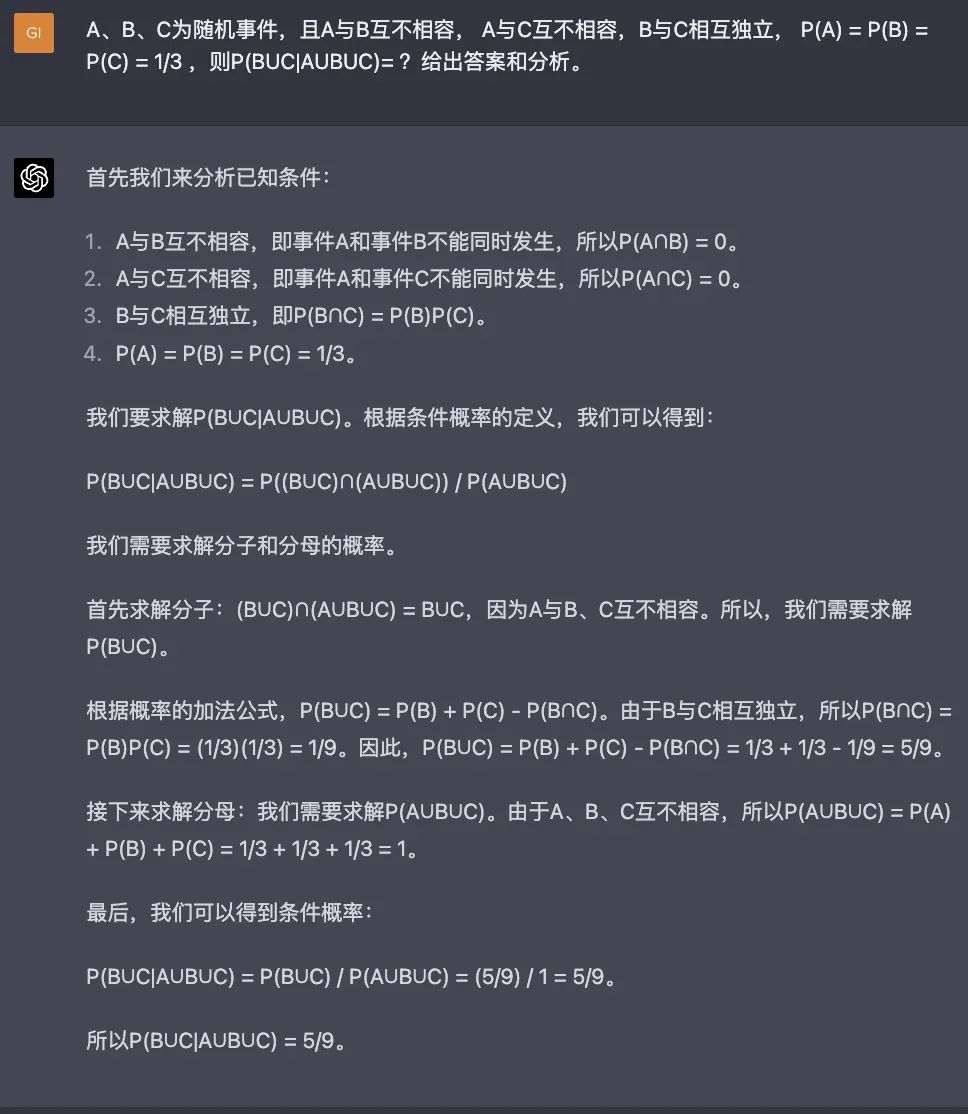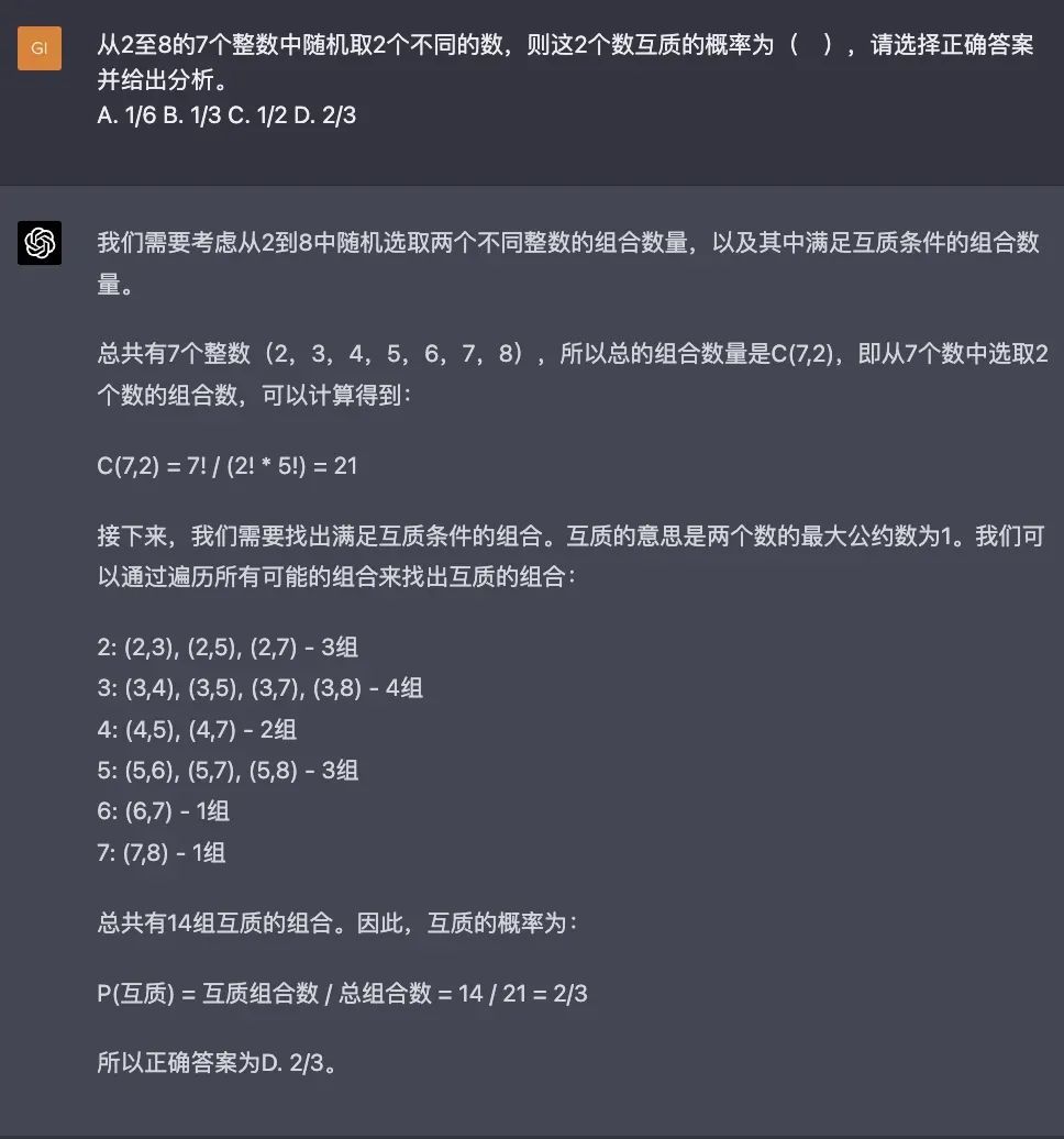 评论:这是2022年高考数学题,GPT4前2次回答不准确,第2次“Regenrate response”后给出了正确答案。