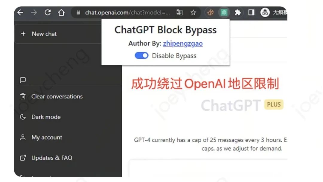 可以使用chrome插件ChatGPT Block Bypass来解决这个问题。