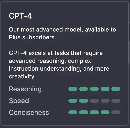 所以我们日常可以先用Default(GPT-3.5),如果答案不满意,再换用GPT4。