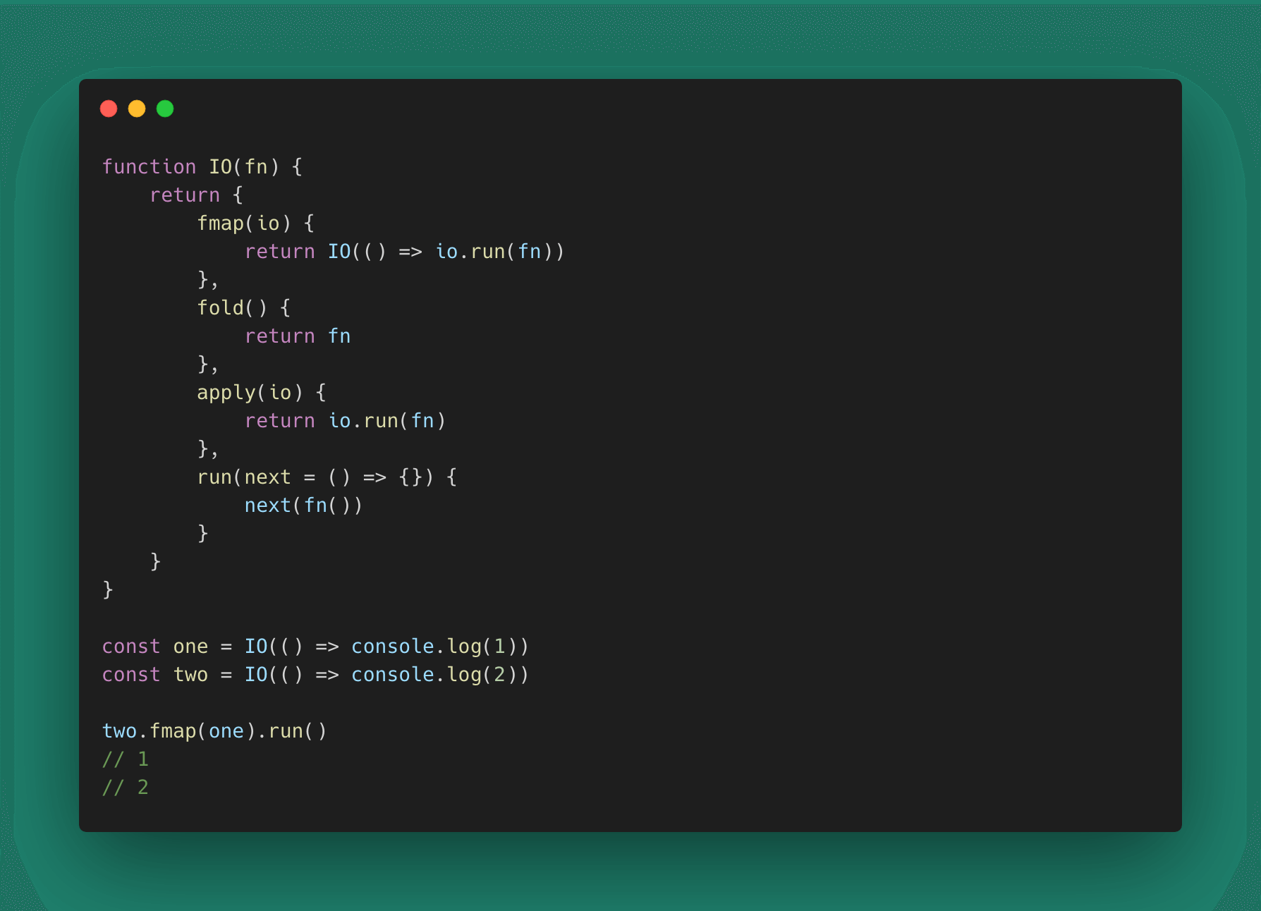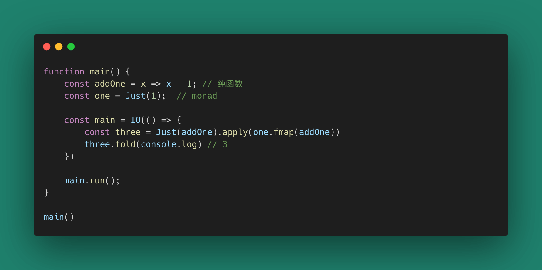 IO类型让我们可以在Monad空间处理那些烦人的副作用,这个Monad类型和Promise(限定副作用到Promise域处理,可链式调用,可用then折叠和映射)很像。