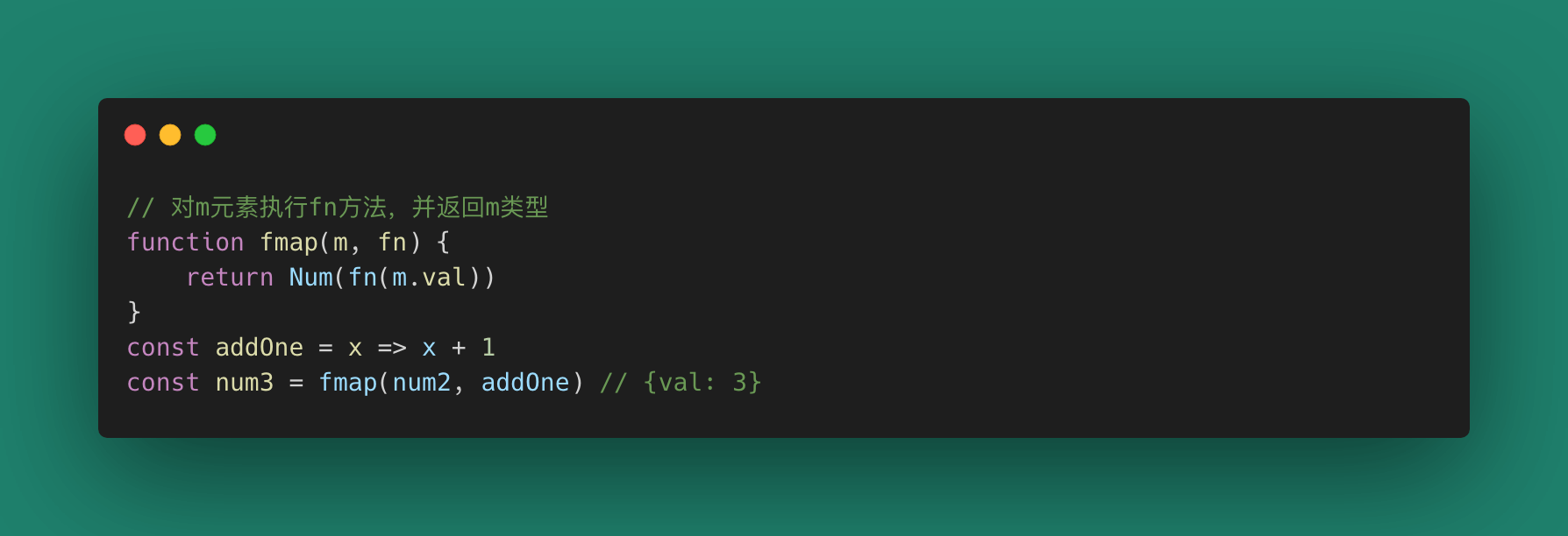 现在我们把num2当作一个独立的数据,并假设存在一个方法fmap可以操作这个数据,可能是这样的。
