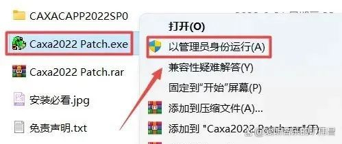 10.鼠标右键点击“Caxa2022 Patch.exe”选择“以管理员身份运行”