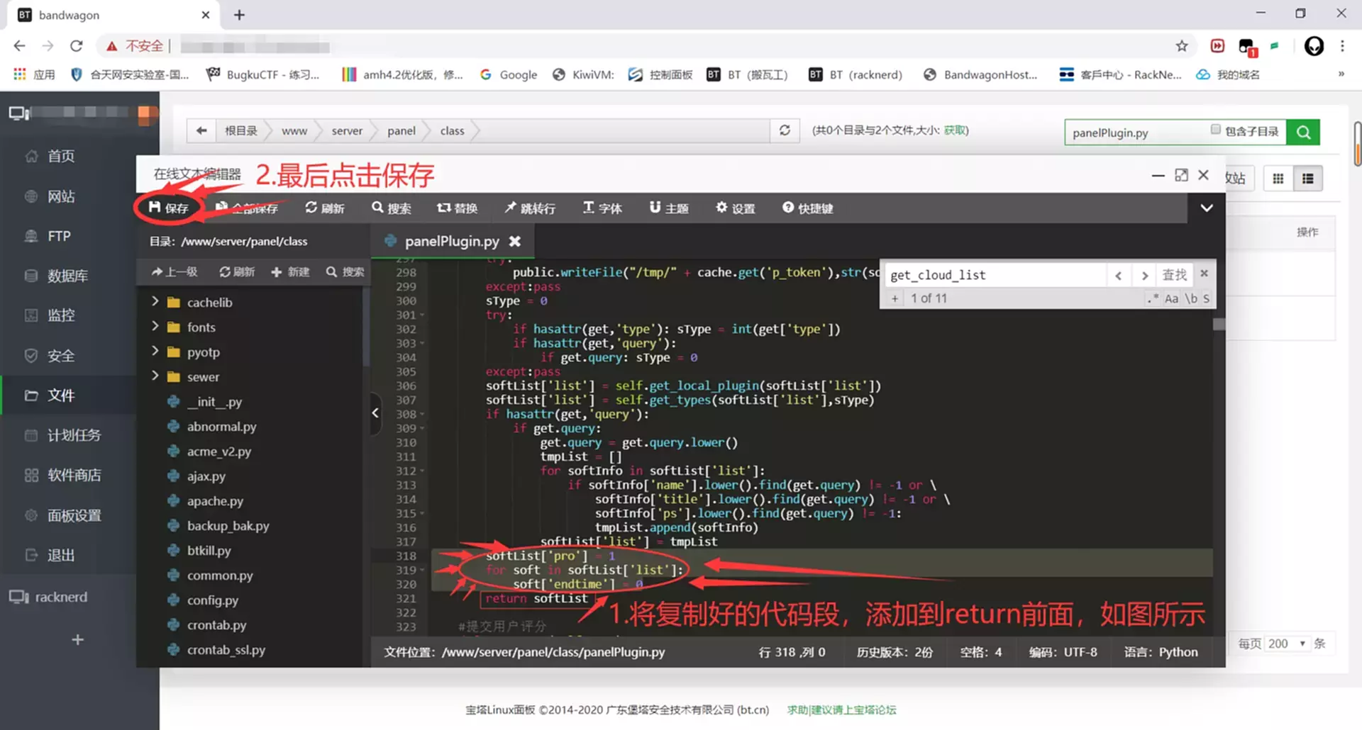 1 .进入宝塔面板,点击文件进入:/www/server/panel/class