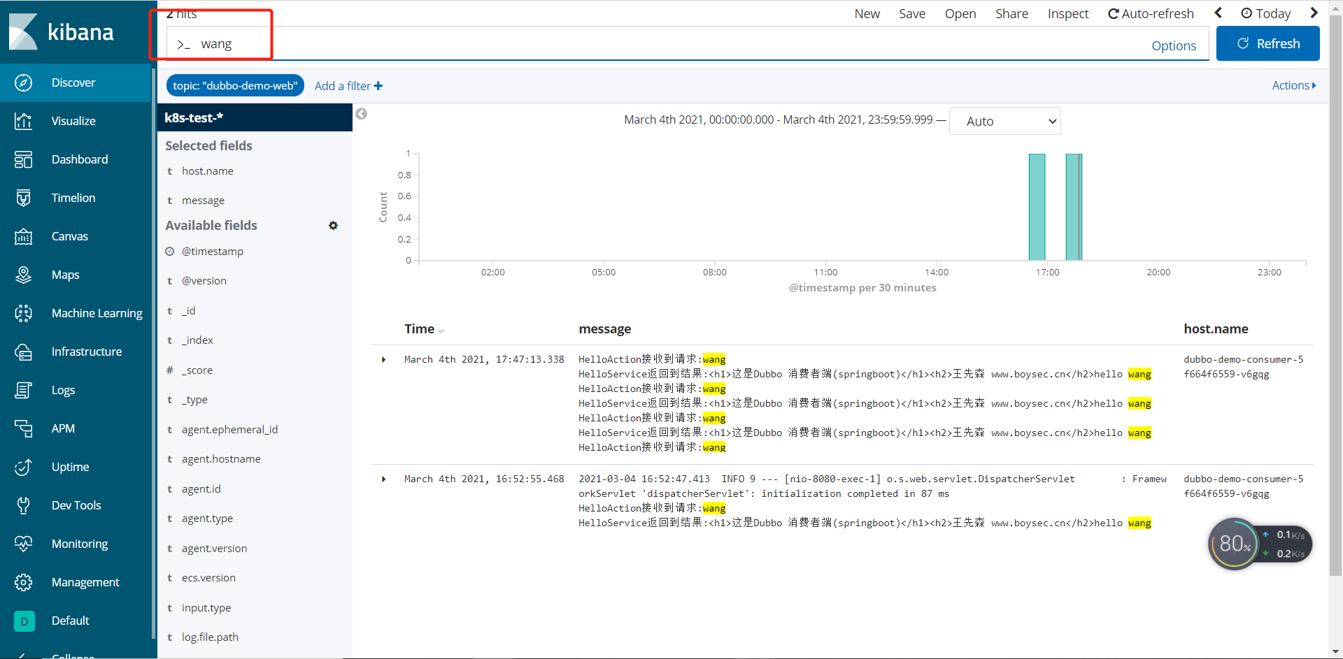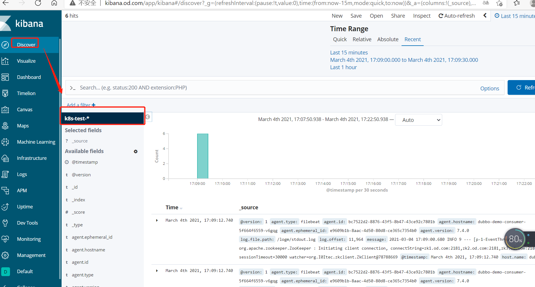 green open k8s-test-2021.03.63 j6jQSHRqSgm3s_LfXUVAbg 5 0 3 0 460b 460b[root@k8s-dns ~]# docker pull kibana:6.8.13