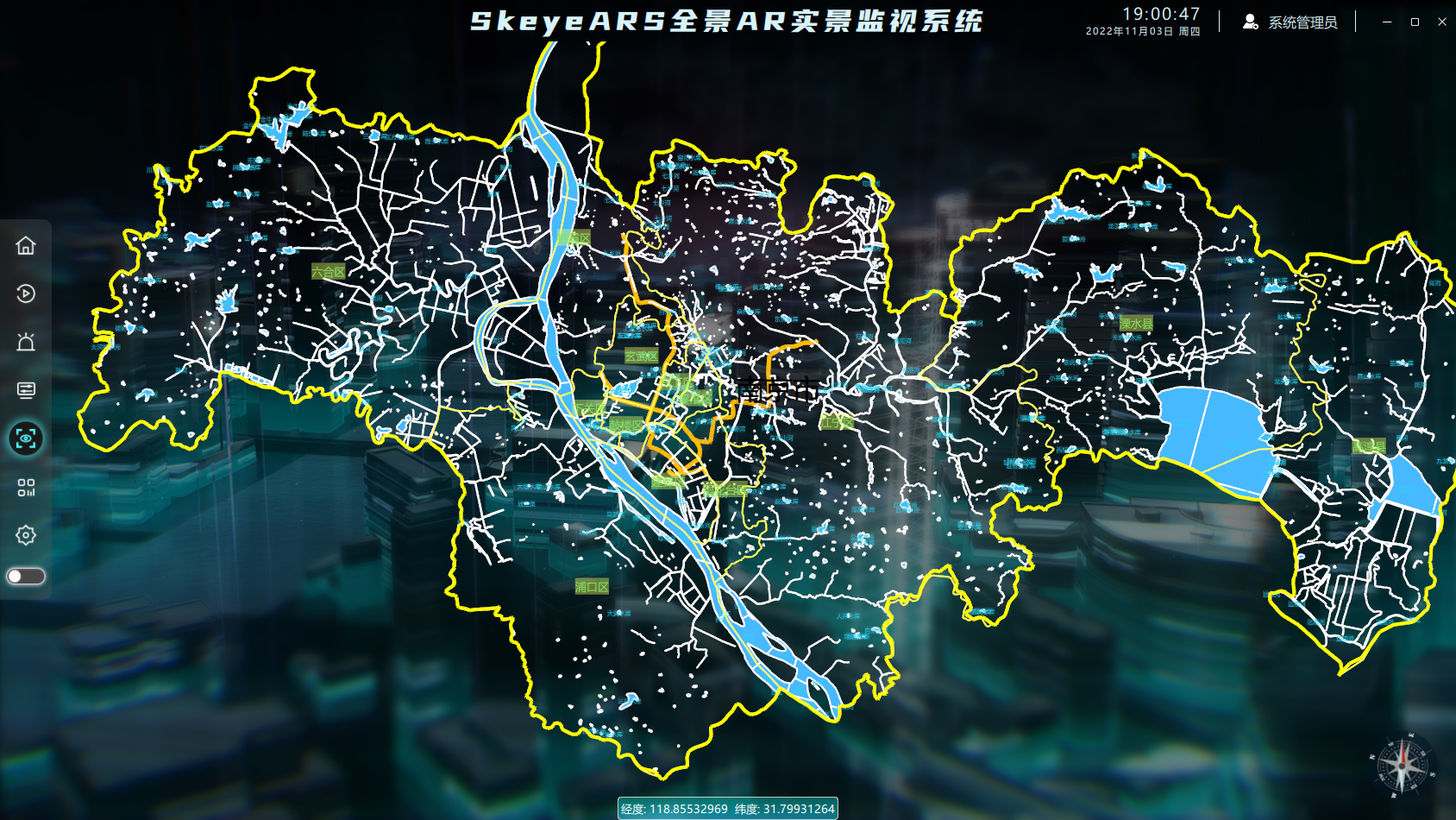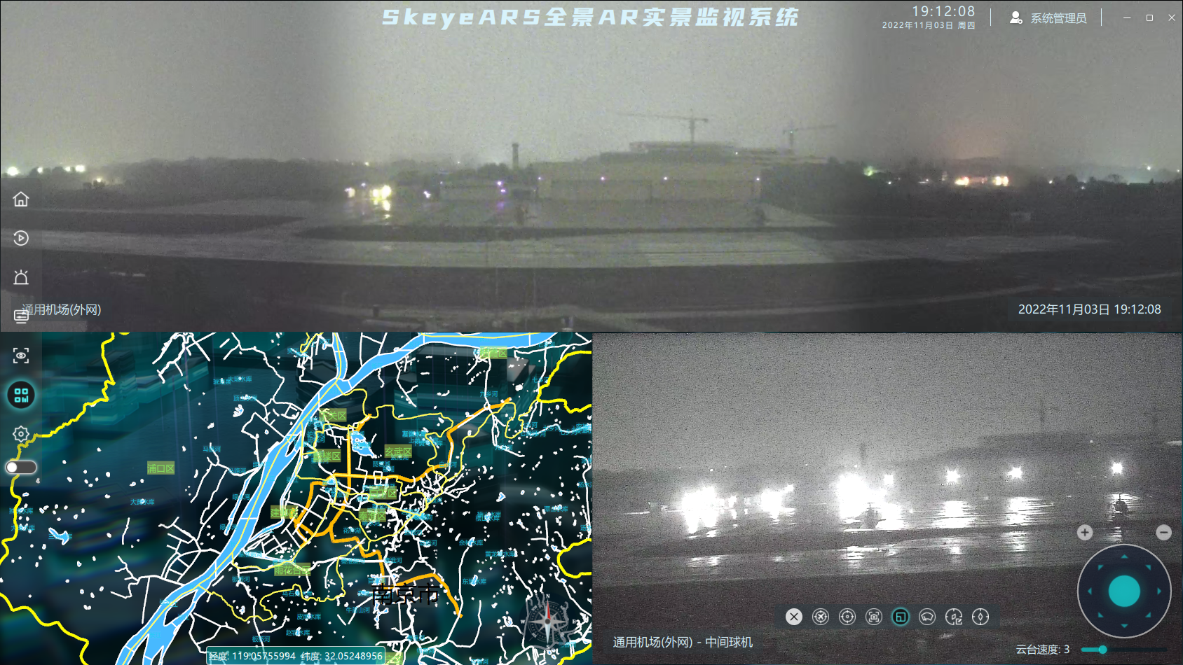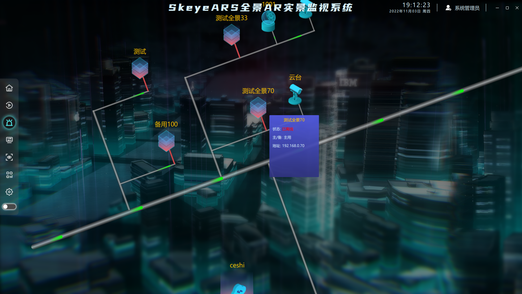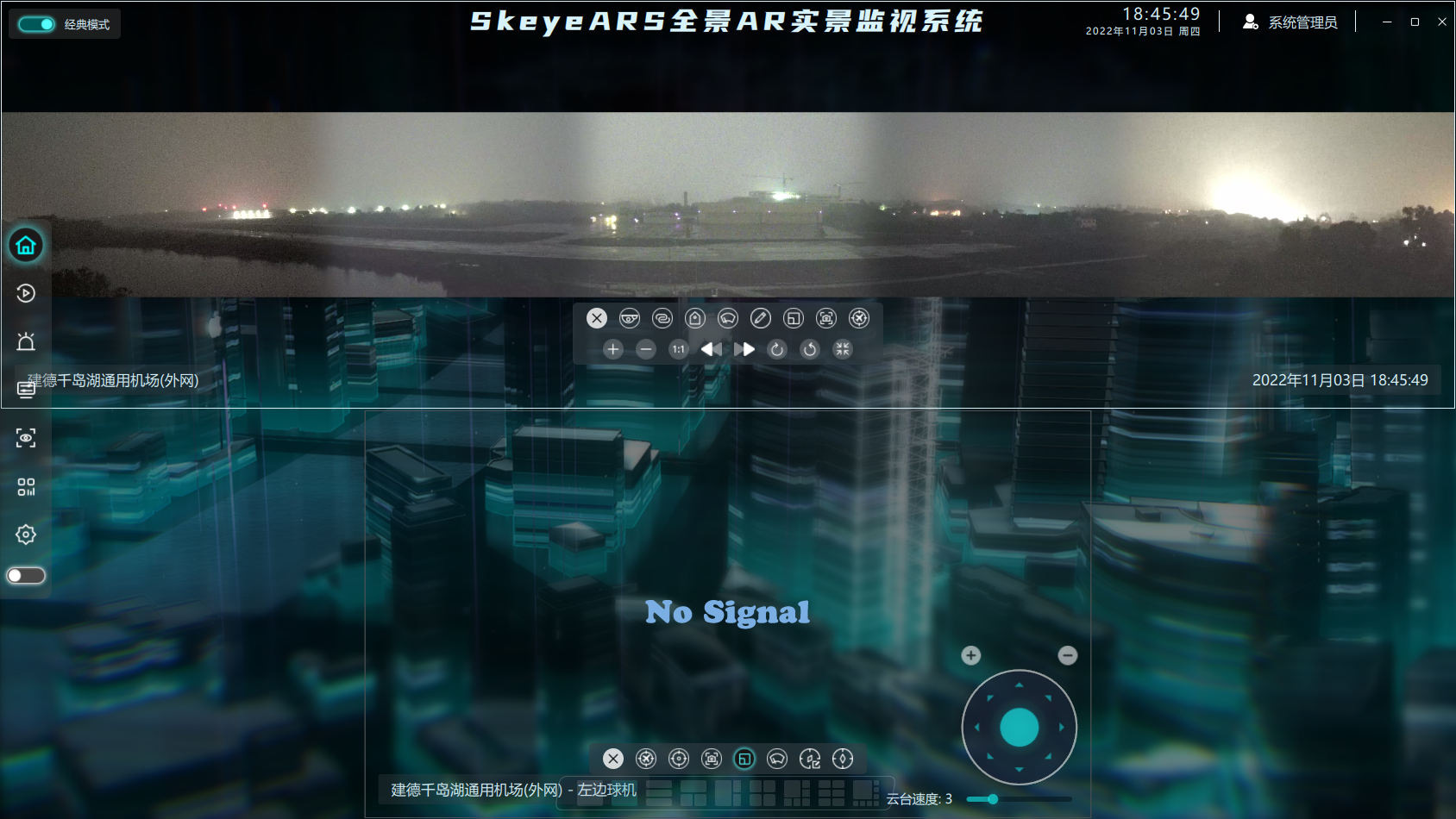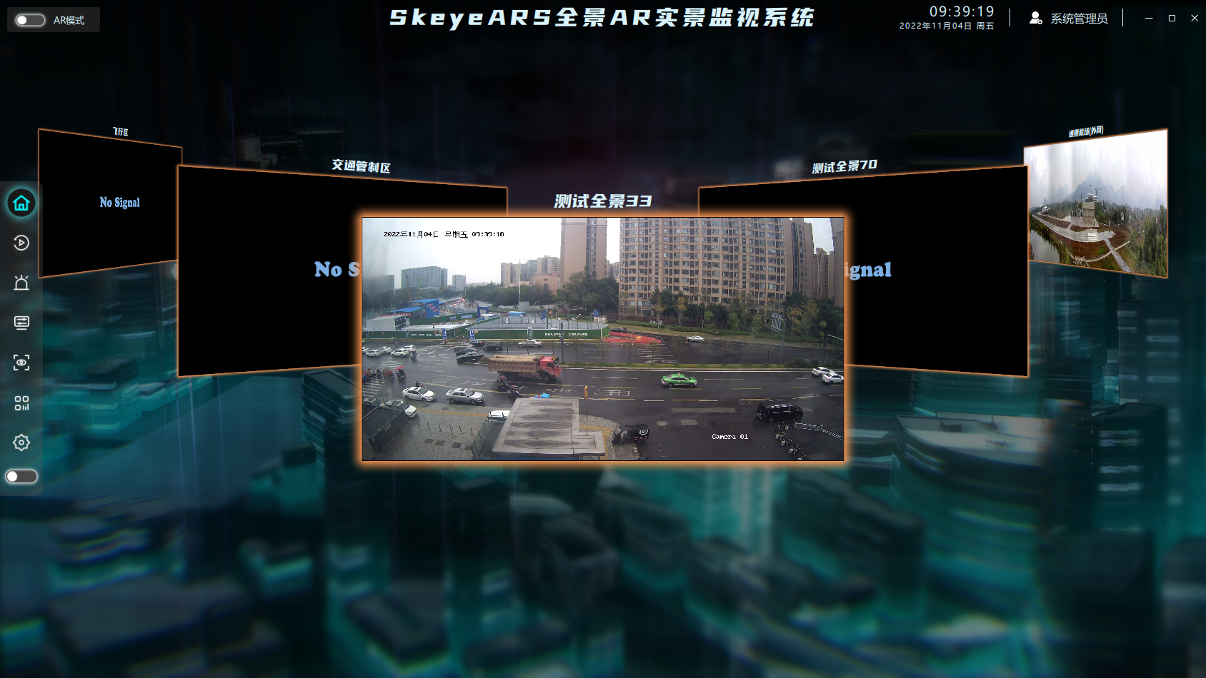 经过大半年的研发和调试,2022年11月份,OpenSKEYE团队发布了新版本的SkeyeARS(全景AR实景增强监视系统),新版SkeyeARS在原有版本的基础上完全重构了界面框架,使得界面看起来更具有科技感,创新性的加入了AR模式,增加全景3D轮播图切换操作和展示,极大地优化了用户体验,并且AR模式和经典模式可以自由切换;新版本SkeyeARS界面如下图所示: