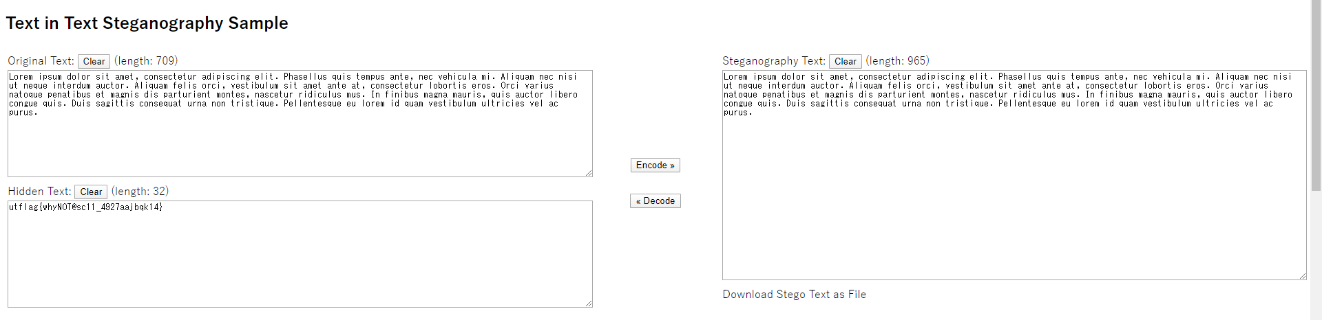 关于这一点,我查找了很多的资料,其实每一种基于零宽度字符的隐写都可以有自己的隐写方式及加密方式,所以可能用这一个工具(或脚本)加密过的字符串在另一个解密网站就无法成功解密……