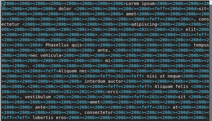 下载附件得到一个txt文件,里面是一长段英文,乍一看没有什么特别的地方,但是将这个文件用vim查看,就会发现其中隐藏了大量的信息