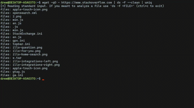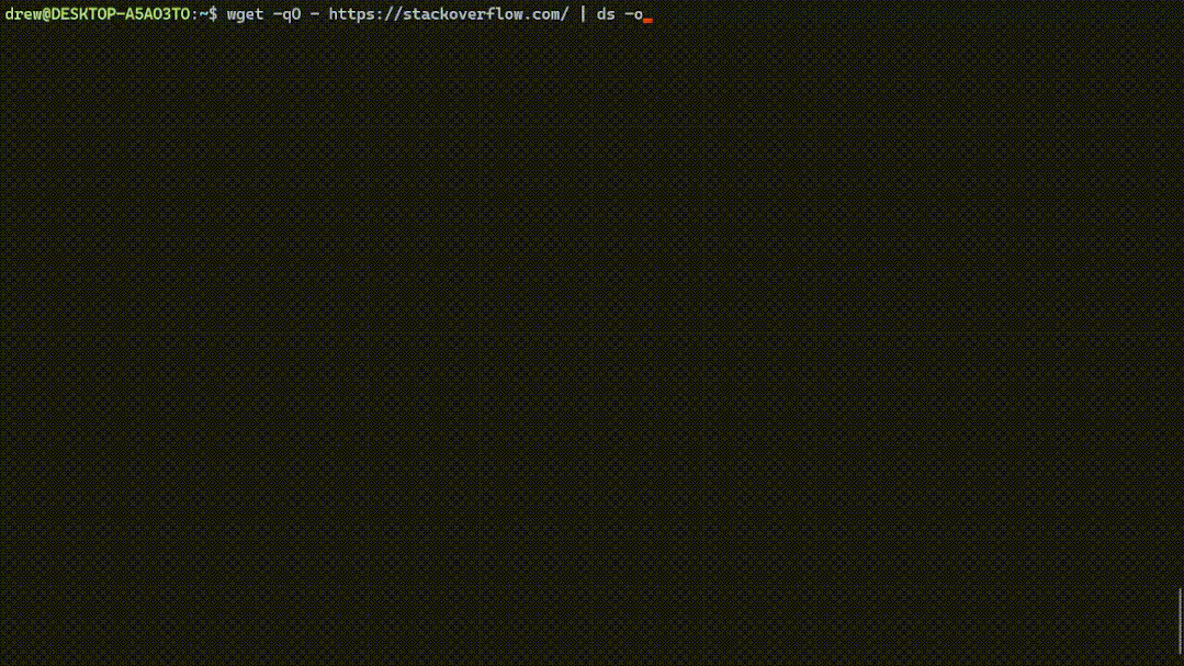 $ wget -qO - https://www.stackoverflow.com | ds -F --clean | uniq
