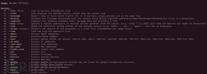 DataSurgeon是一款多功能的数据提取工具,该工具专为网络安全事件应急响应、渗透测试和CTF挑战而设计。在该工具的帮助下,广大研究人员可以快速从文本内容中提取出各种类型的敏感数据,其中包括电子邮件、电话号码、哈希、信用卡、URL、IP地址、MAC地址、SRV DNS记录等等!