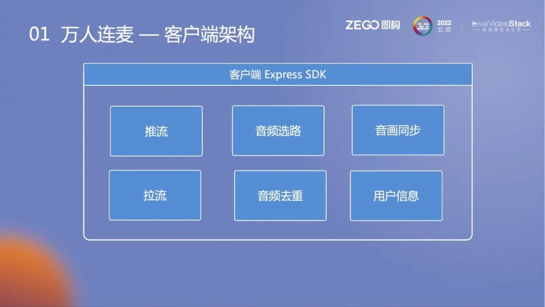ZEGO RTI 与传统不同,我们不再限制同时开麦人数。那么我们实现的这个万人连麦有用吗?答案是肯定的,比如线上万人会场、线上万人音乐会,我们不仅需要听唱歌人的声音,还需要听到很多很多观众的声音,而不是几个人的声音,这样的万人连麦就非常有用,可以营造出真实的氛围感和沉浸感。