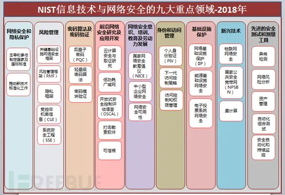 NIST在以上九大领域的研究成果值得我们参考和学习,从2018年至今,这几个领域的研究方向进行过调整和重心转变,以下是NIST 2018年的各领域对应的研究方向: