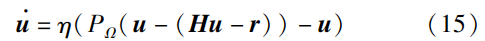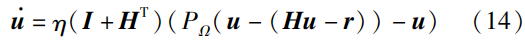 式中,\eta >0 表示收敛系数;投影函数P_{\Omega}(·) 是神经网络的有界激活函数,并被表述为