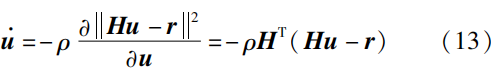 ZND控制器能够将机器人时变最优化问题转化为时变等式求解问题,进一步归纳为零化问题进行求解。2002年,ZHANG等首次提出了一种基于神经动力学模型\pmb{\dot{\varepsilon}}=\pmb{-\mu\varepsilon} 的ZND控制器以在线求解线性方程组。以式(11)为例,ZND控制器将零化误差函数定义为\pmb{\varepsilon = Hu-r} ,并得到: