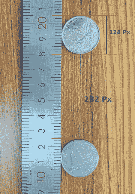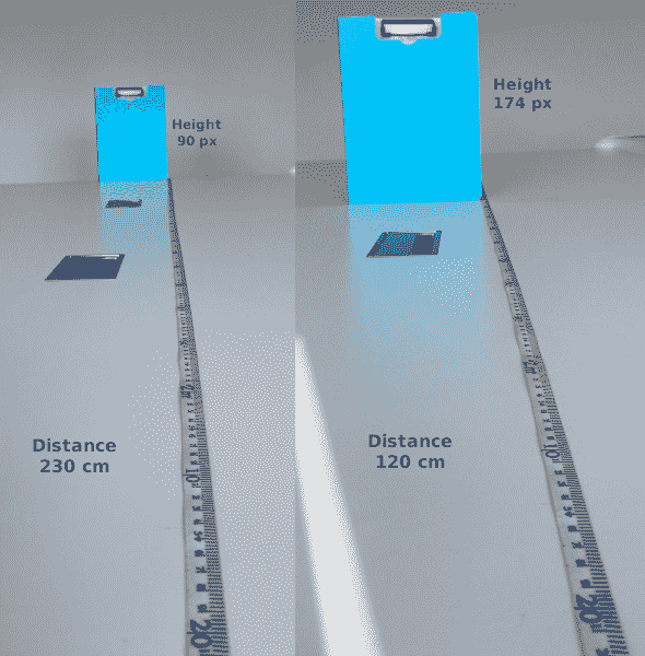 可可数据集中有许多类,其中对象通常具有固定位置; 例如,交通信号灯,消防栓和停车标志。 我们可以在相机视图中找到其中一些,选择其中任意两个,测量它们之间的距离,然后将所选对象及其距离用作参考。