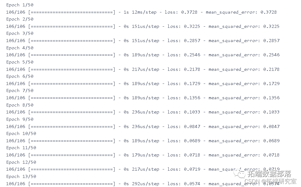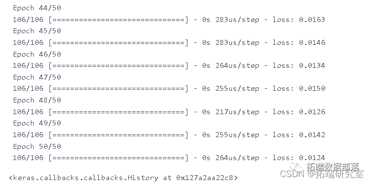 model.fit(X_trn y_rin, epochs=50, batch_size=200)