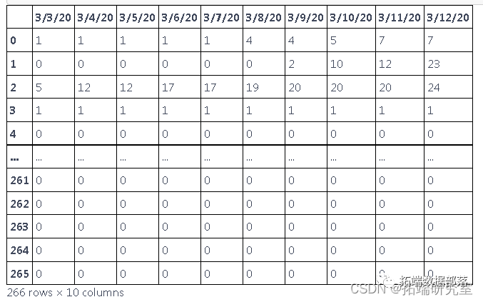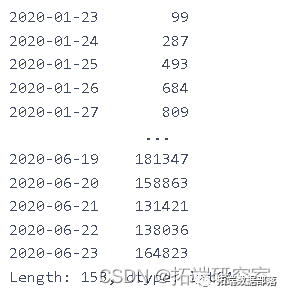 df=pd.read_csv("C://global.csv")此表中的数据以累积的形式呈现,为了找出每天的新病例,我们需要减去这些值
